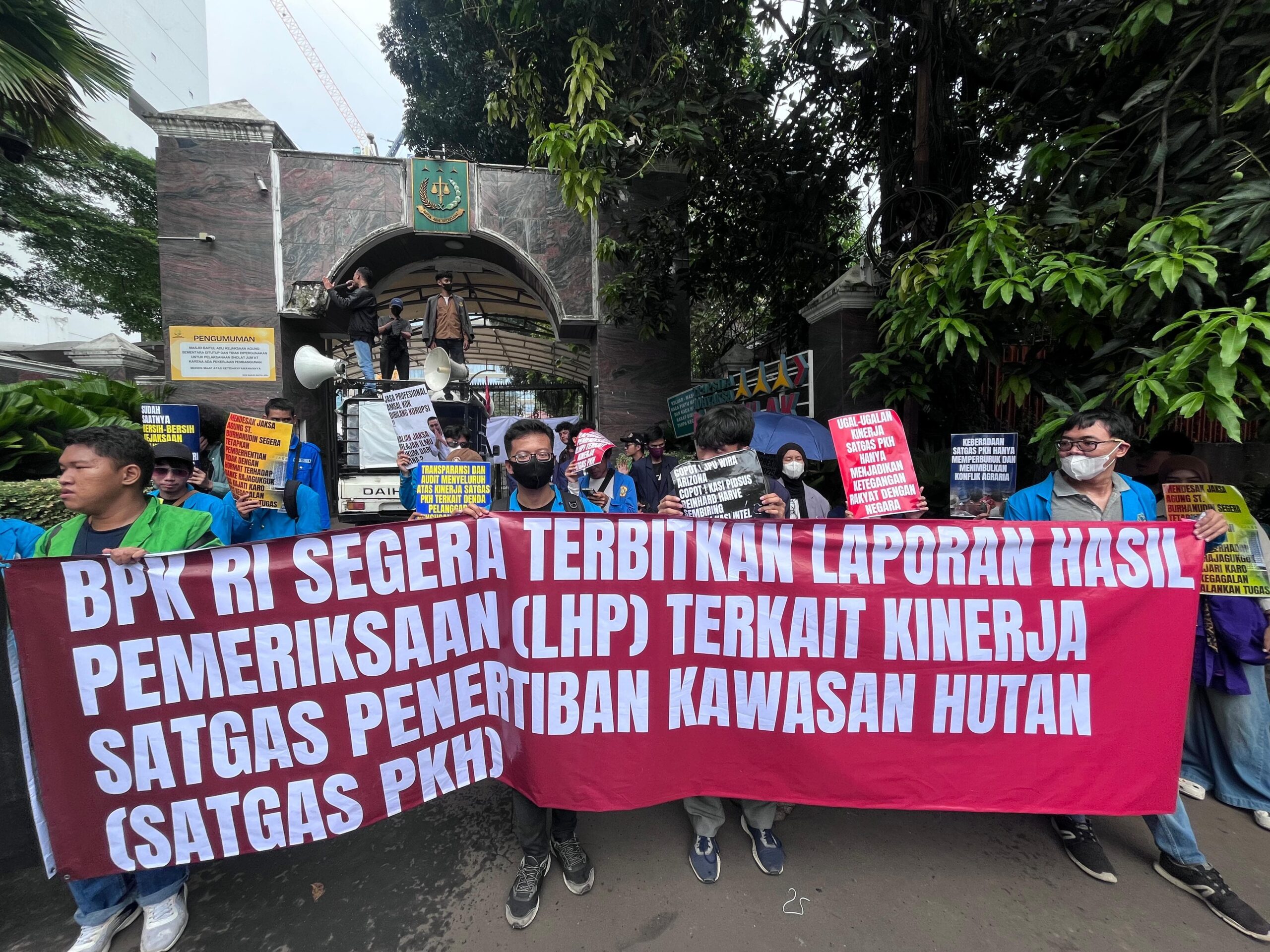 Dalam tuntutannya, massa aksi meminta Badan Pemeriksa Keuangan (BPK) segera melakukan audit menyeluruh terhadap kinerja Satgas PKH serta menerbitkan Laporan Hasil Pemeriksaan (LHP) sebagai bentuk akuntabilitas publik.
